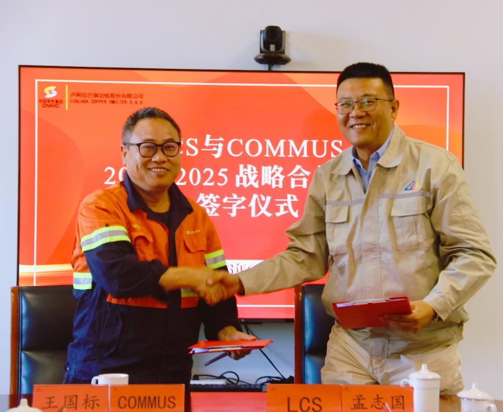 剛果(金)當(dāng)?shù)貢r(shí)間6月3日,中國(guó)有色集團(tuán)出資企業(yè)盧阿拉巴銅冶煉股份有限公司(簡(jiǎn)稱:盧阿拉巴銅冶煉)與紫金礦業(yè)穆索諾伊礦業(yè)簡(jiǎn)易股份有限公司(簡(jiǎn)稱:COMMUS)簽署2024-2025年戰(zhàn)略合作協(xié)議。盧阿拉巴銅冶煉董事長(zhǎng)孟志國(guó)、COMMUS總經(jīng)理王國(guó)標(biāo)代表雙方簽字。