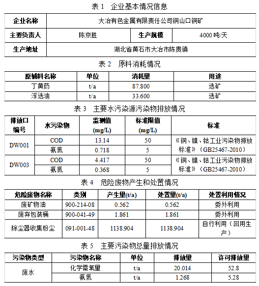根據《中華人民共和國清潔生產促進法》、《清潔生產審核辦法》等相關文件規定,現將大冶有色金屬有限責任公司銅山口銅礦清潔生產審核情況及2024年企業基本信息、污染物排放和總量控制情況公告如下,請社會各界對銅山口銅礦實施清潔生產審核的情況進行監督。