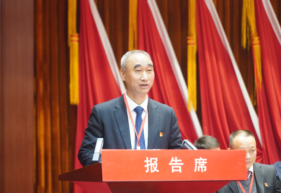 公司黨委書記、董事長胡國斌代表公司黨委作題為《堅持長期主義? 聚焦兩端發(fā)力? 為建設(shè)“優(yōu)高美強(qiáng)好”新有色團(tuán)結(jié)奮斗》的工作報告。