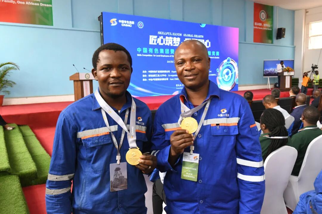 The gold medals for the five categories, namely team leaders, laboratory technicians, electricians, fitters, and welders, were claimed by Nambo Maron from NFC Africa Mining Plc. (NFCA), Nawezhi Jackson from CLM, Fred Sakala from CLM, Olack Kumwenda from the African subsidiary of China 15th Metallurgical Construction Group Co., Ltd. (15MCC), and Patric Miswalo from 15MCC, respectively.